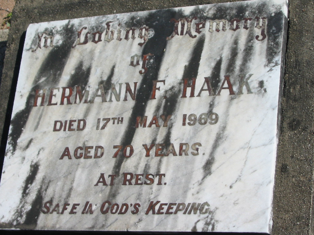Hermann HAAK, died 17 May 1969 aged 70 years;