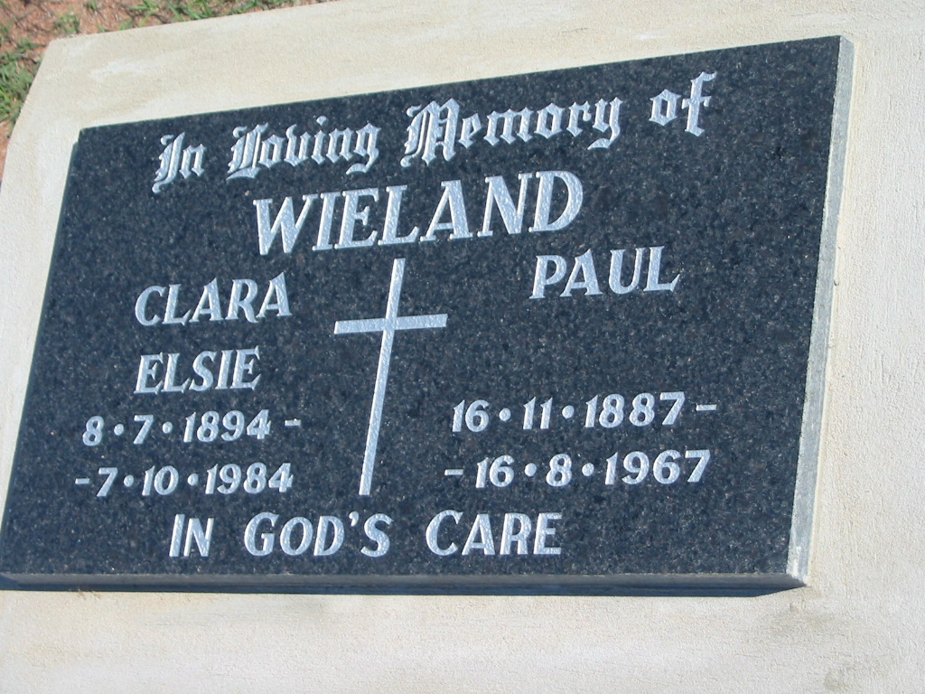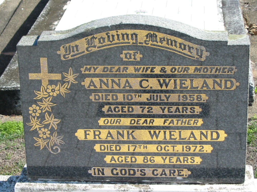 Frank WIELAND, died 17 Oct 1972 aged 86 years, father;
