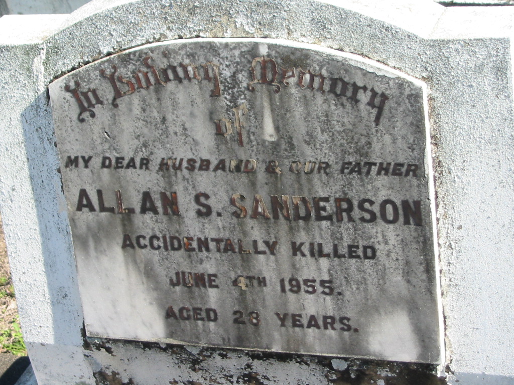 Allan S. SANDERSON, accidentally killed 4 June 1955 aged 28 years, husband father;