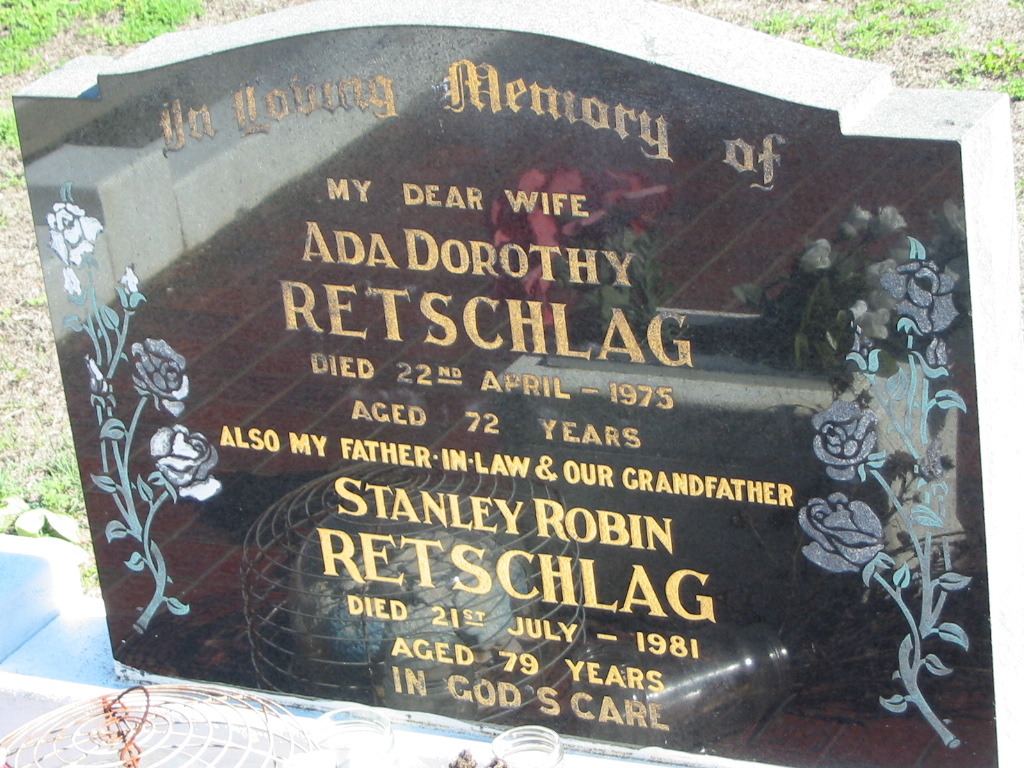 Stanley Robin RETSCHLAG, died 21 July 1981 aged 79 years, father-in-law grandfather;