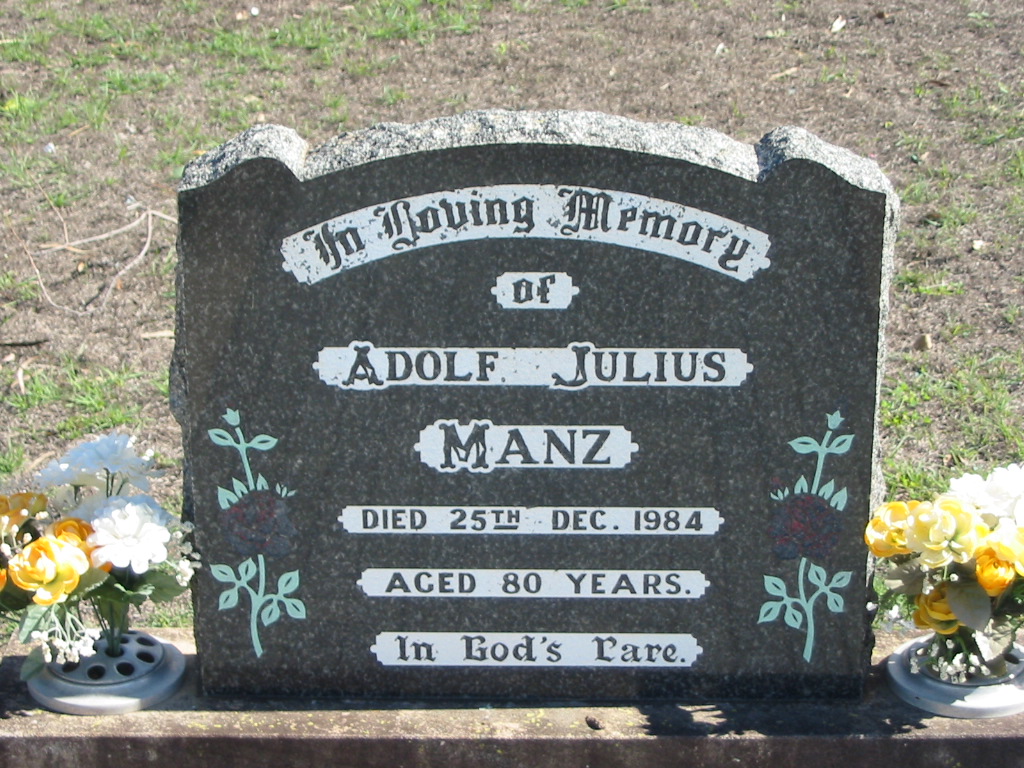 Adolf Julius MANZ, died 25 Dec 1984 aged 80 years;