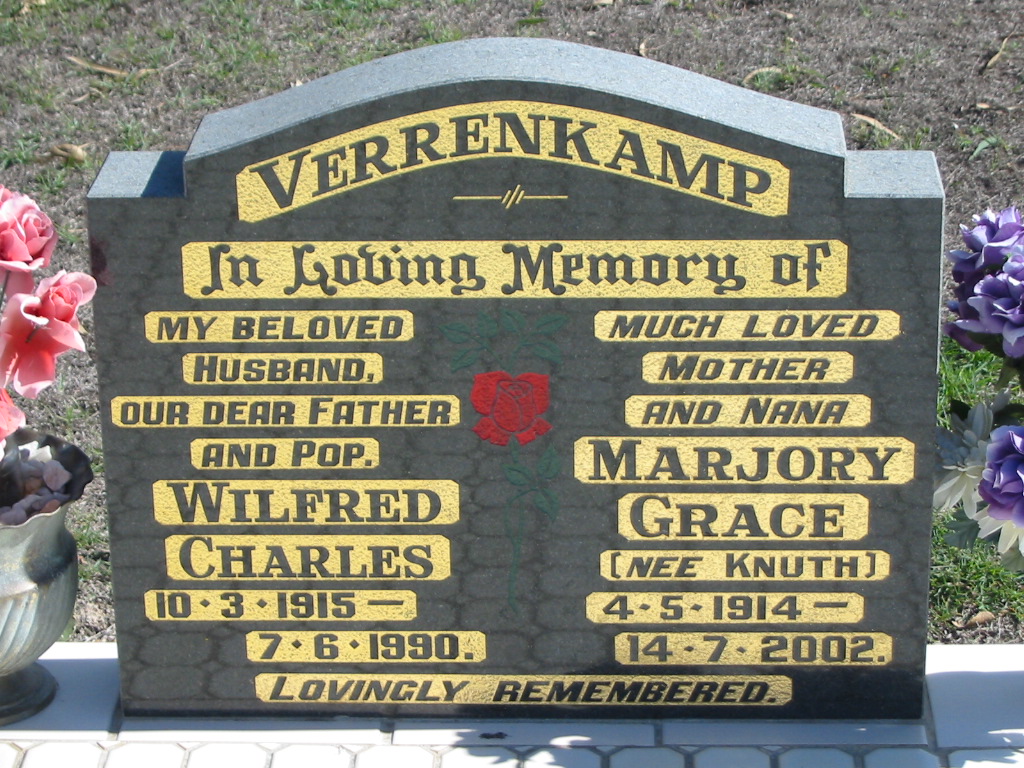 Marjory Grace, nee KNUTH, 4-5-1914 - 14-7-2002, mother nana;