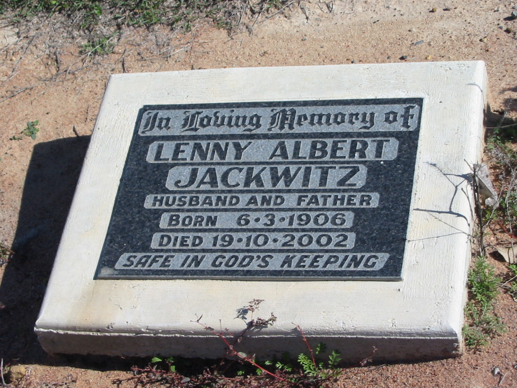 Lenny Albert JACKWITZ, born 6-3-1906 died 19-10-2002, husband father;