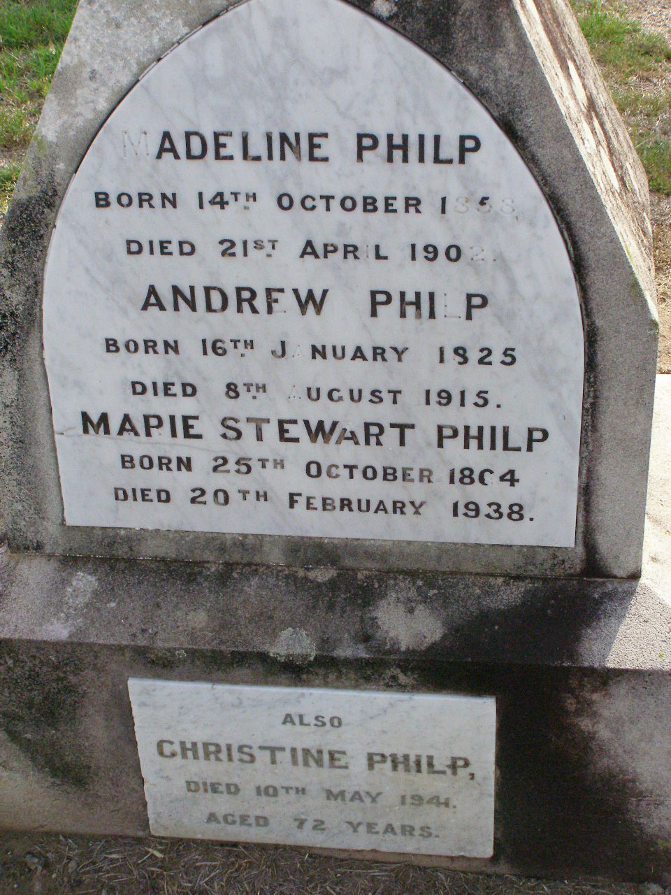 born 14 Oct 1858 died 21 April 1902;