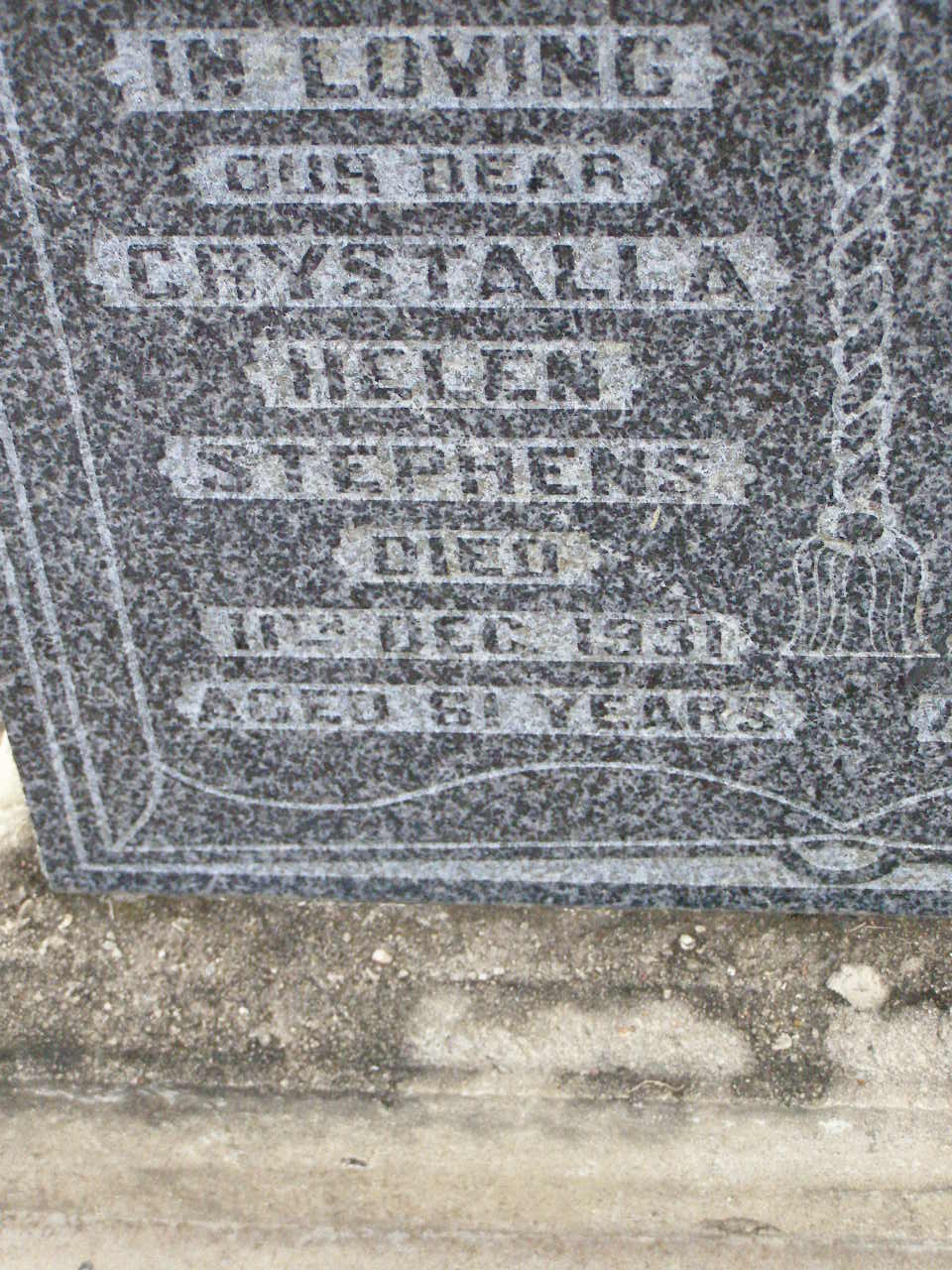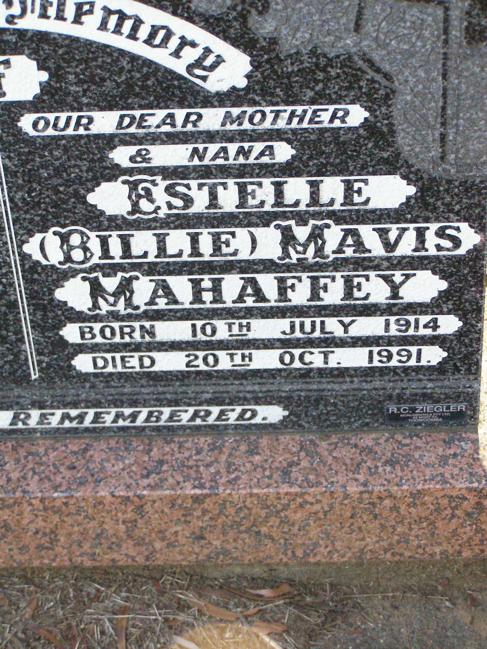 died Toowoomba 3-10-1991;