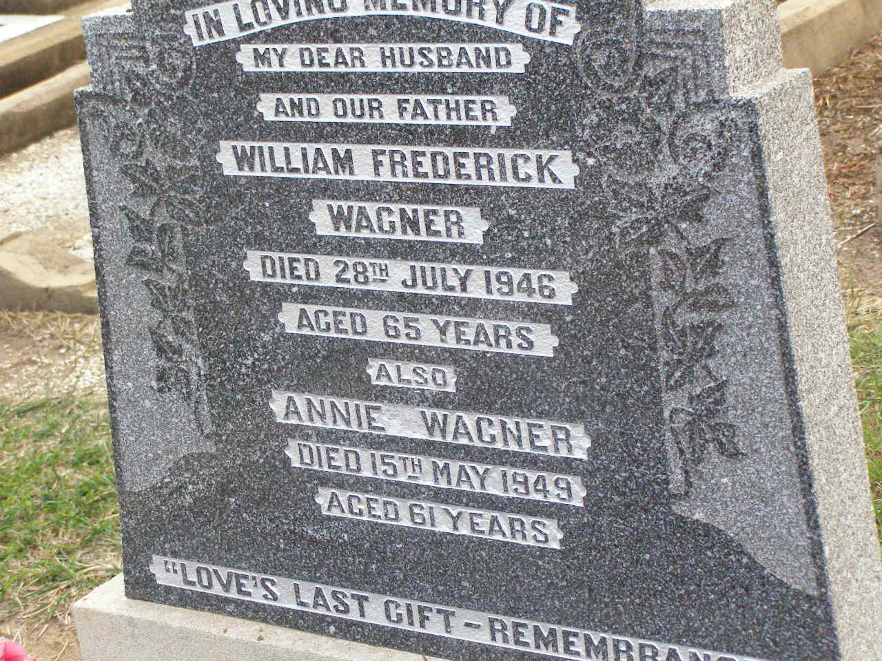 died 7 March 1907 aged 61 years,