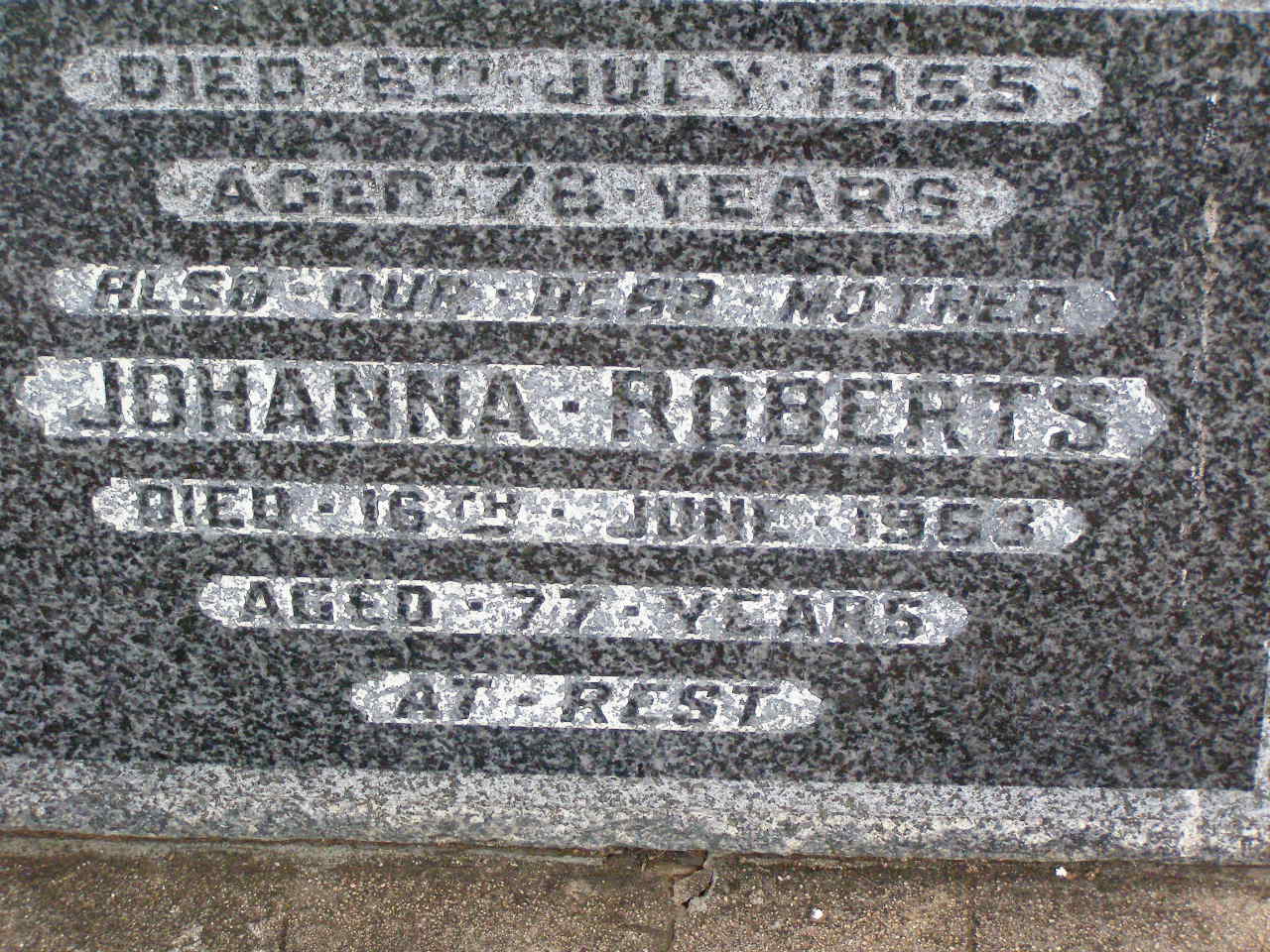 died 28 June 1978 aged 72 years;