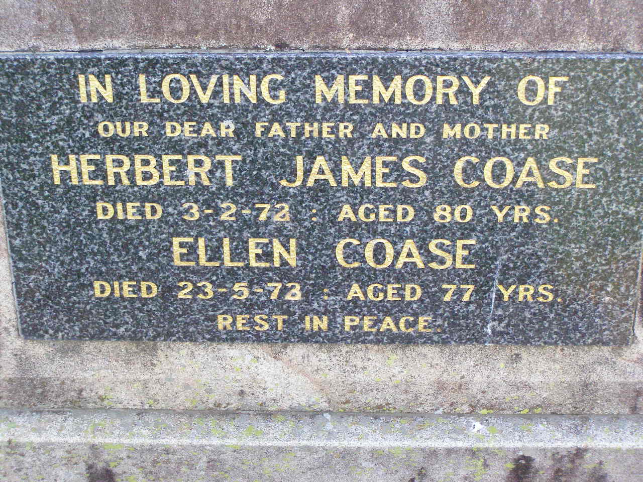 born 27-9-1912 died 30-7-1983 aged 70 years;