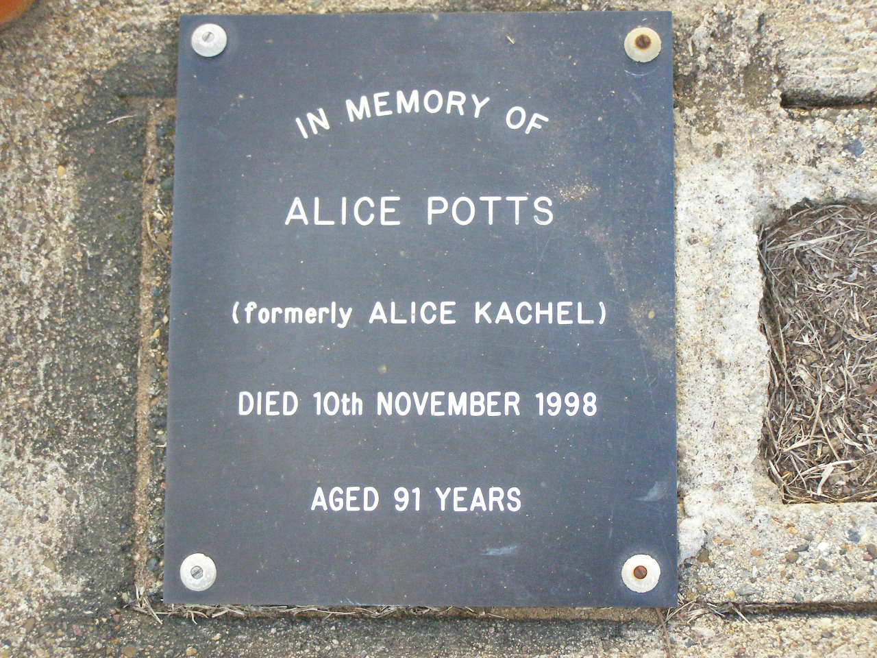 Alice POTTS, formerly Alice KACHEL,