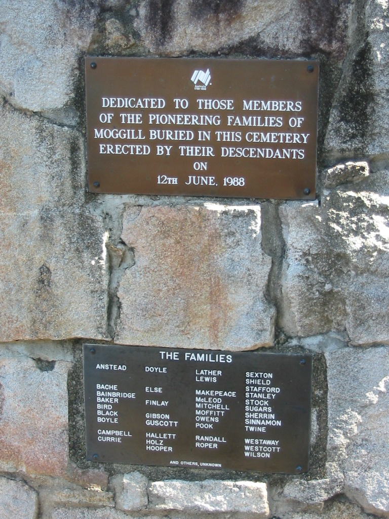 To question about those buried in Moggill, the answer is always the same "No plots were sold, no burial