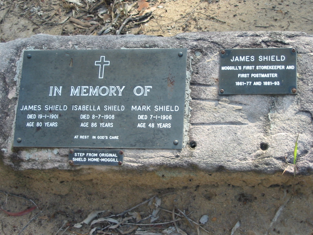 James Shield was Moggill's first storekeeper and first postmaster 1861-77 and 1881-93