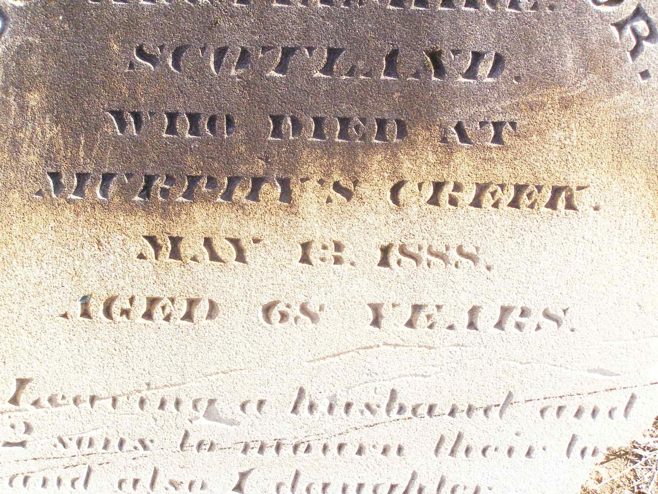died Murphys Creek 13 May 1888 aged 68 years;