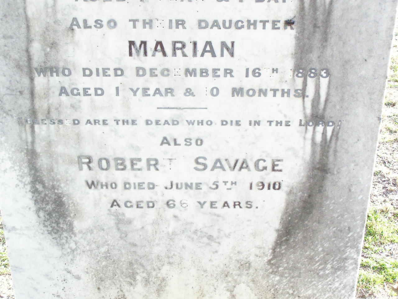 died 2 Sept 1883 aged 19 years;