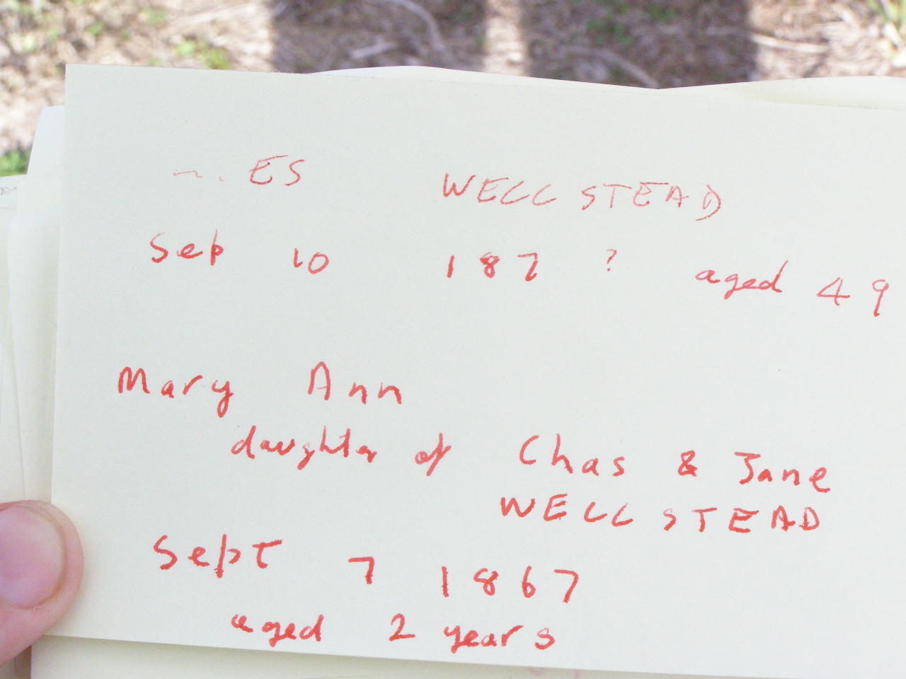 daughter of Chas & Jane WELLSTEAD,