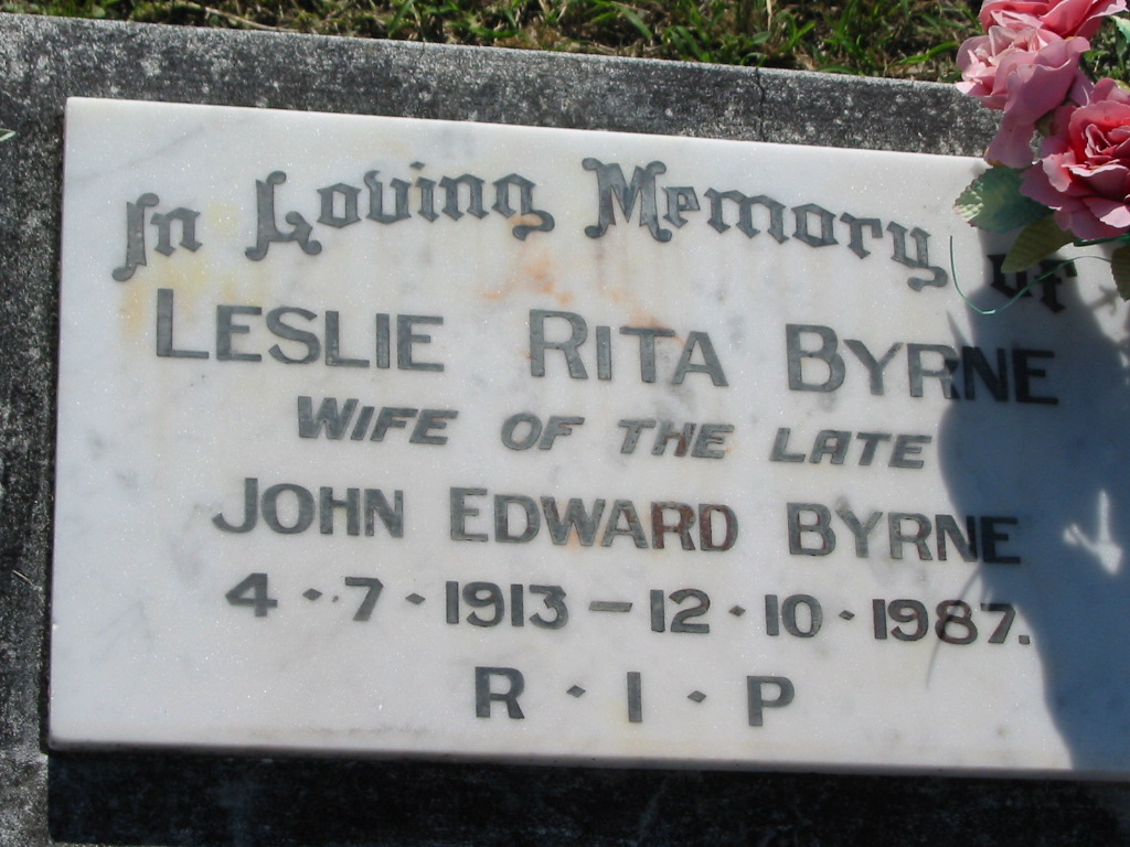 Leslie Rita BYRNE, wife of late John Edward BYRNE,