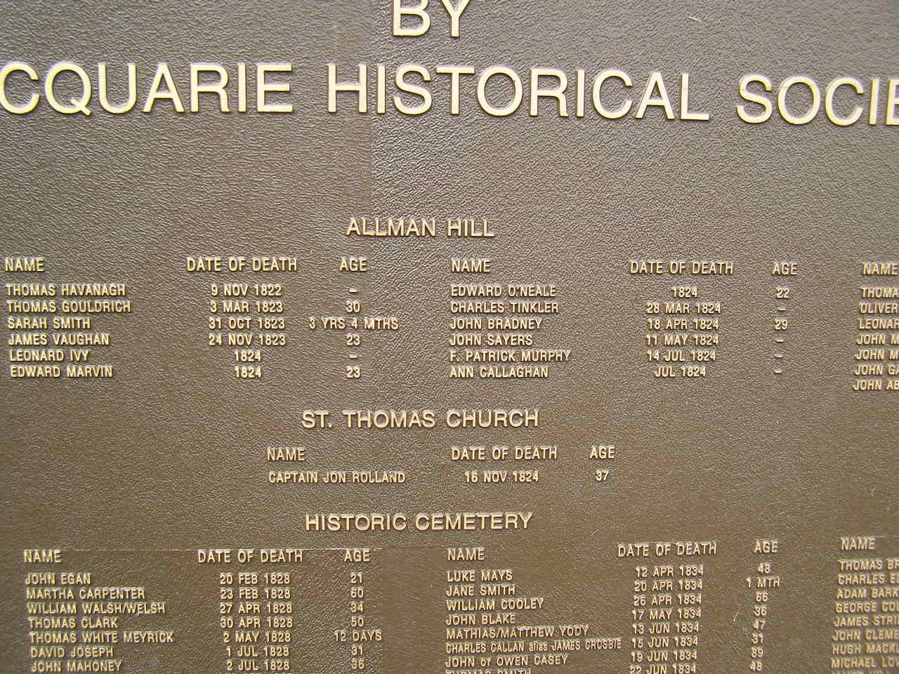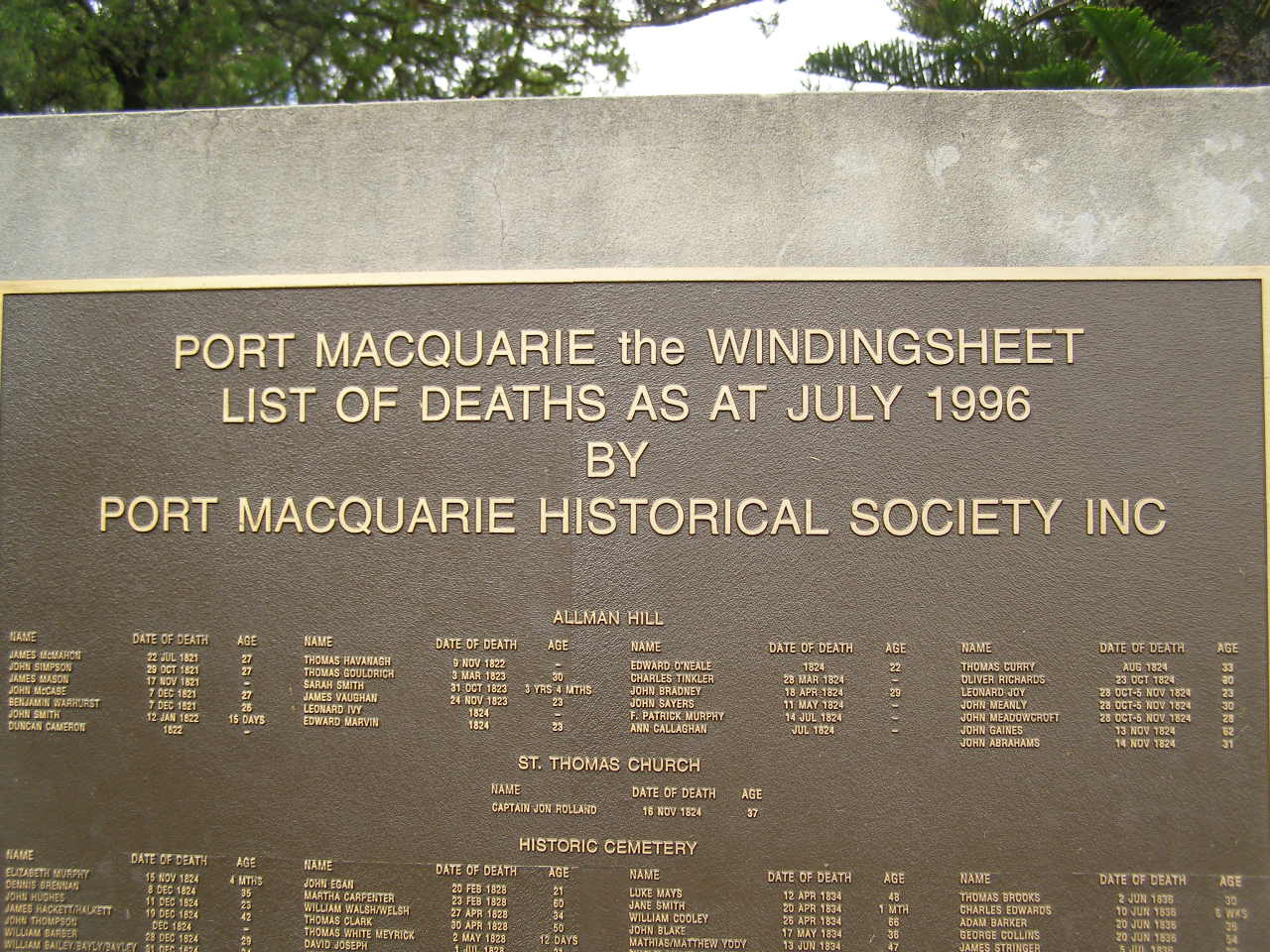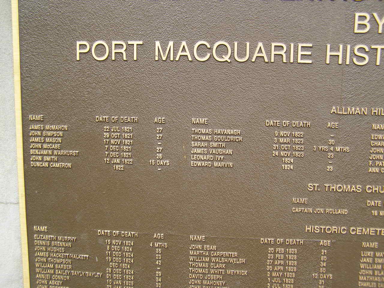 Port Macquarie historical society - list of deaths