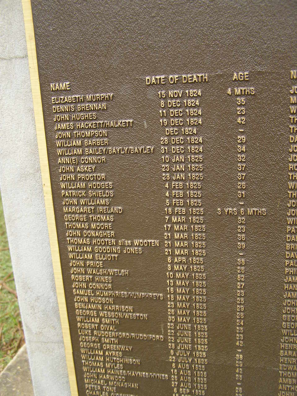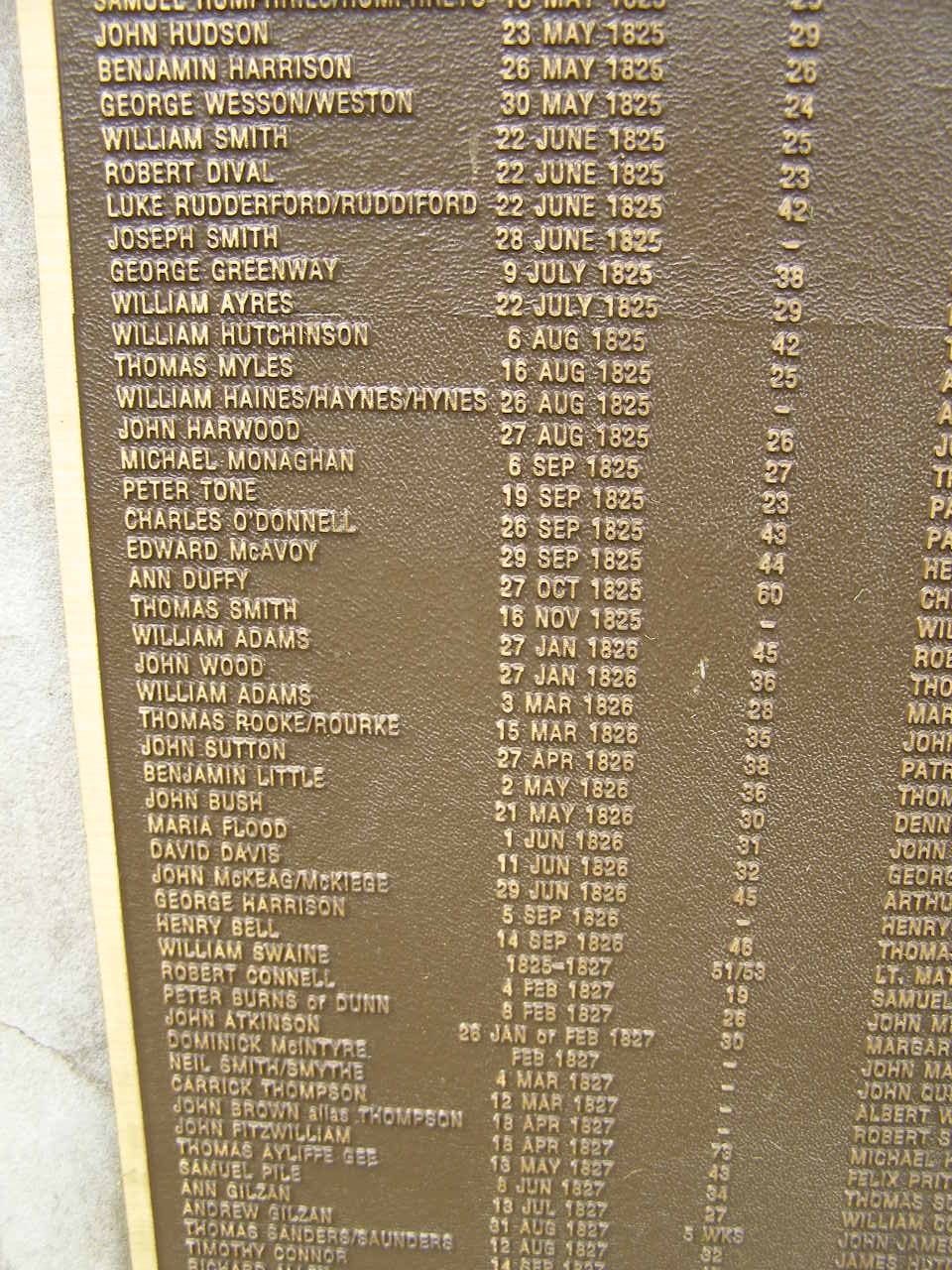William HAINES/HAYNES/HYNES 25 Aug 1825 ?