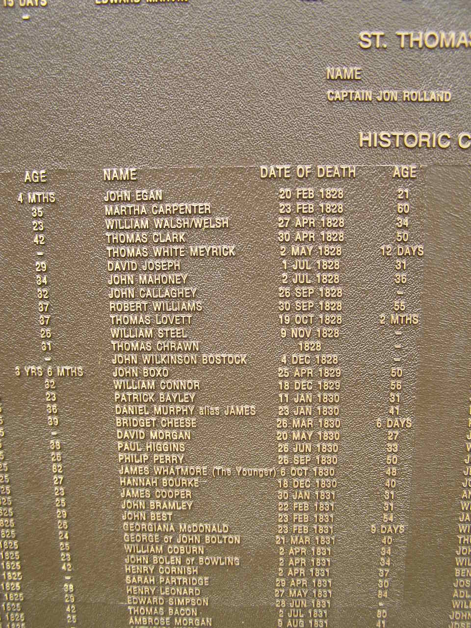 Thomas ROOKE/ROURKE 15 Mar 1826 aged 35