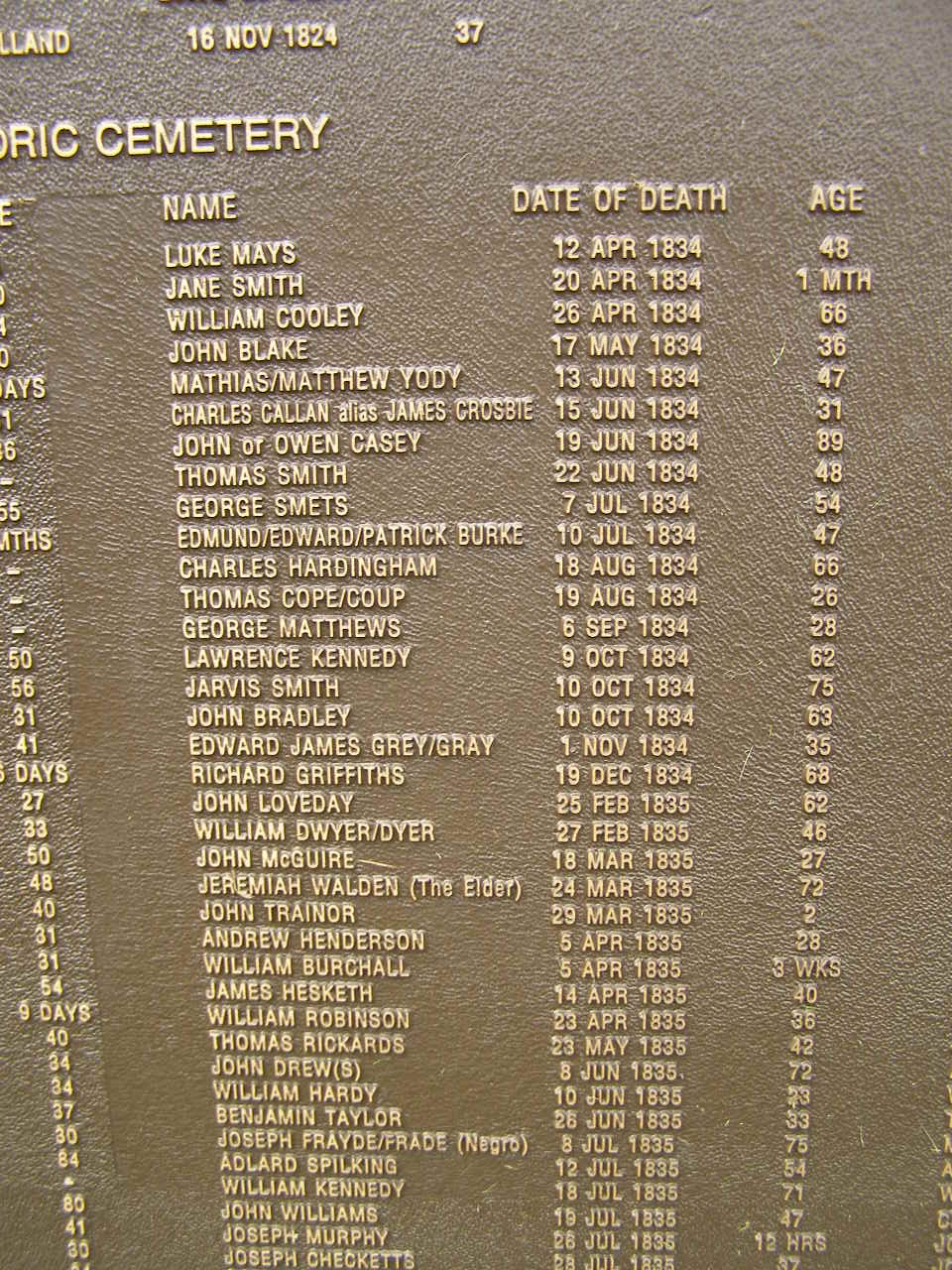 Dennis BRENNAN 8 Dec 1824 aged 35