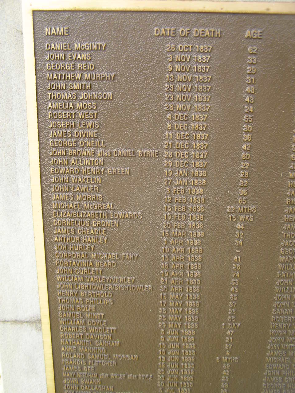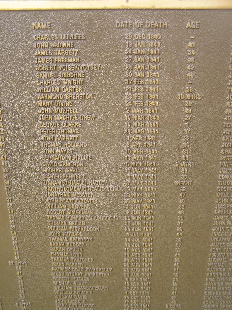 Edward McAVOY 29 Sep 1825 aged 44
