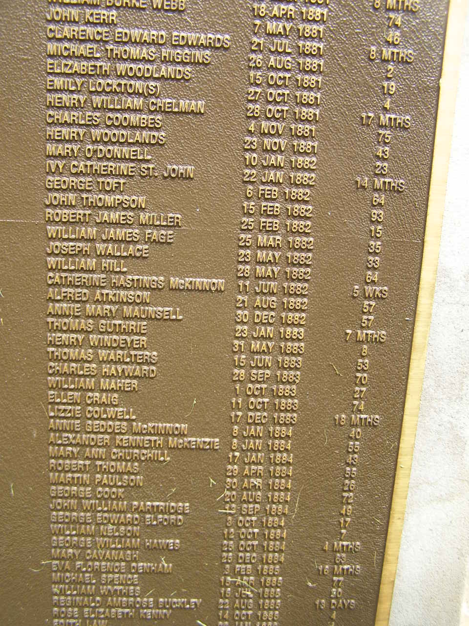 Joseph WALLACE 23 May 1882 aged 33