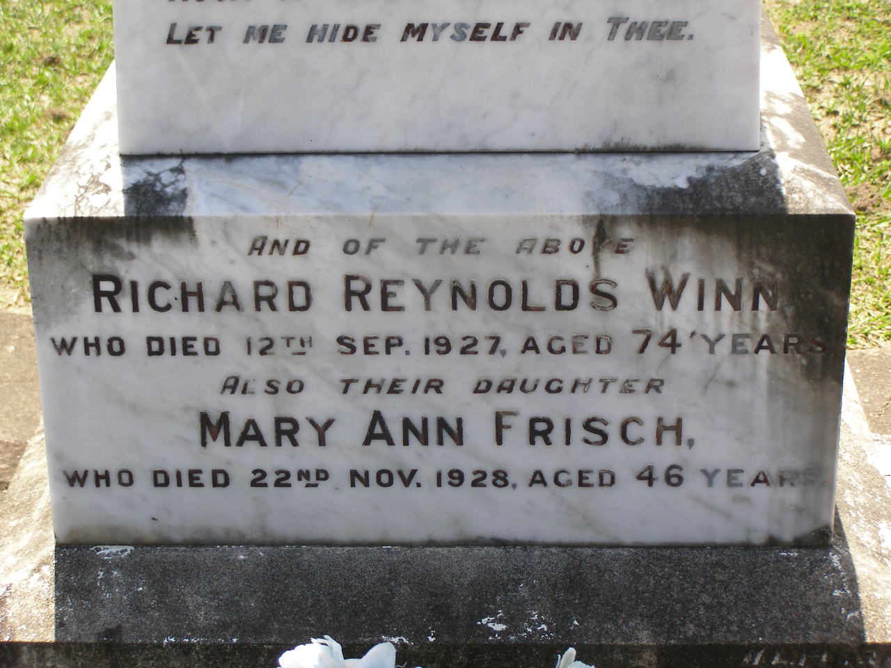 erected by R.R., M.A., & D.M. WINN;