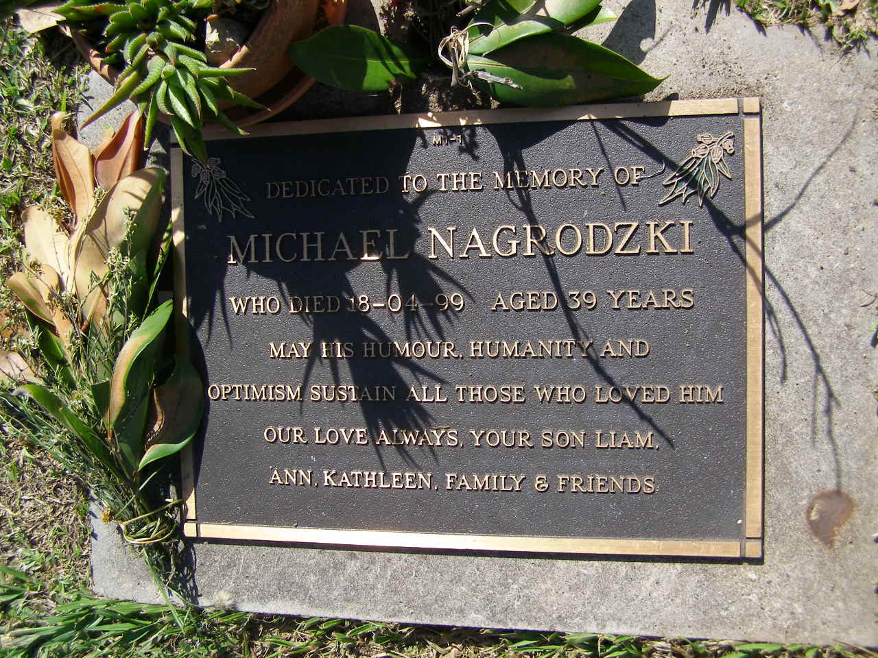 died 18-04-99 aged 39 years,