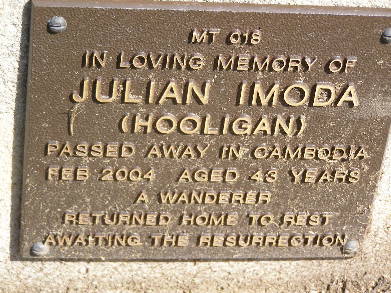 died Cambodia Feb 2004 aged 43 years;