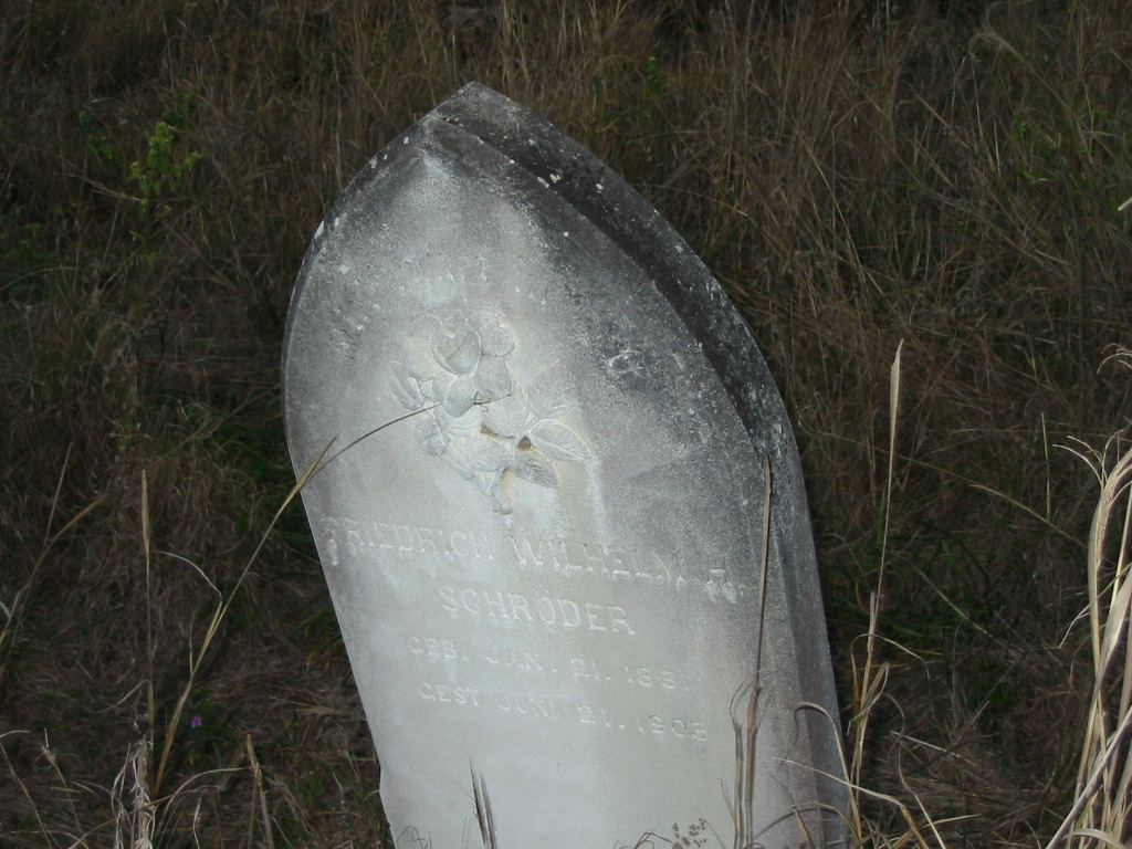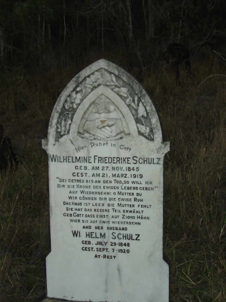 The Vernor German Baptist Cemetery is still there [old Fernvale-Lowood road]. It is actually now in the middle of a cow paddock. The Rosewood Historical Society did clean it up a couple of years ago. [Ref Cathy Reinke Apr 2002]