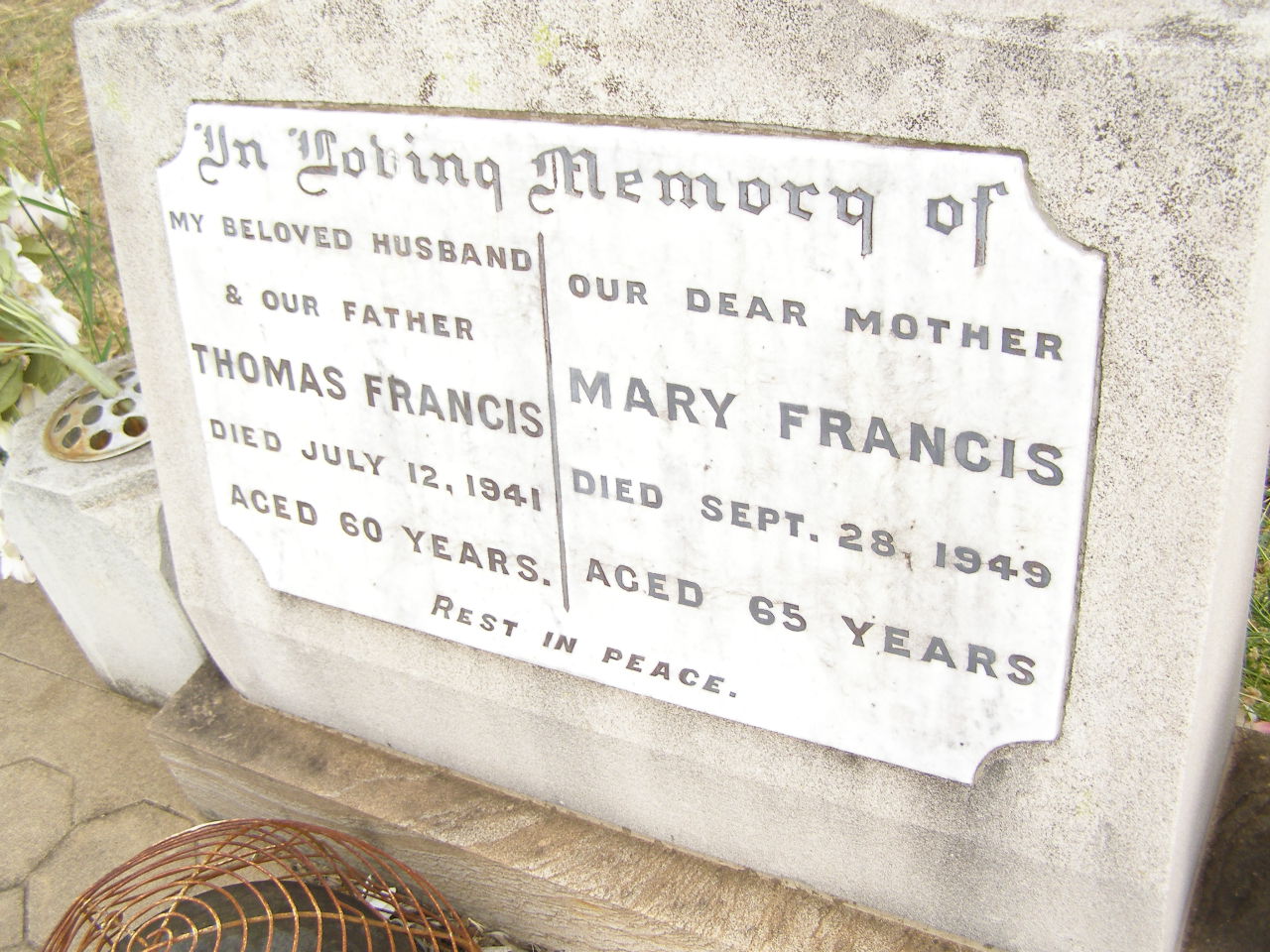 died 3 Sept 1953 aged 84 years;