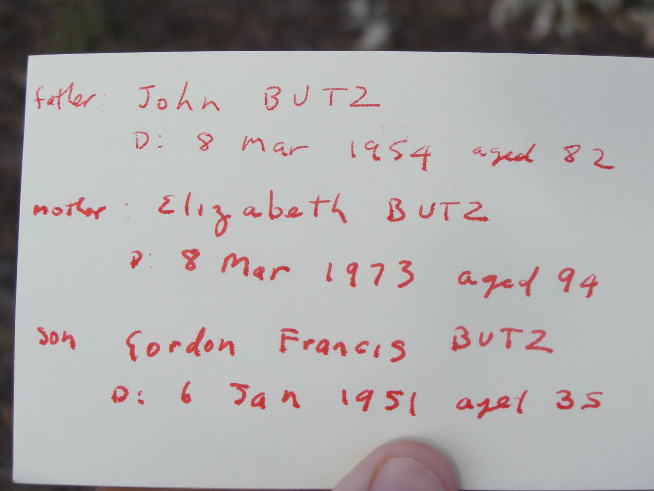 Elizabeth BUTZ,