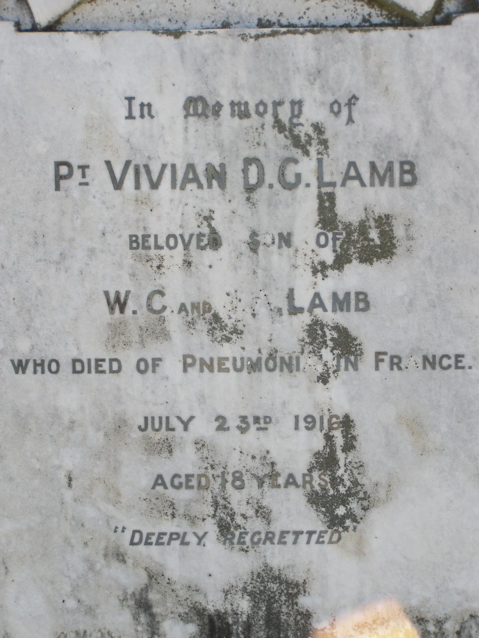 23 July 1916 aged 18 years;