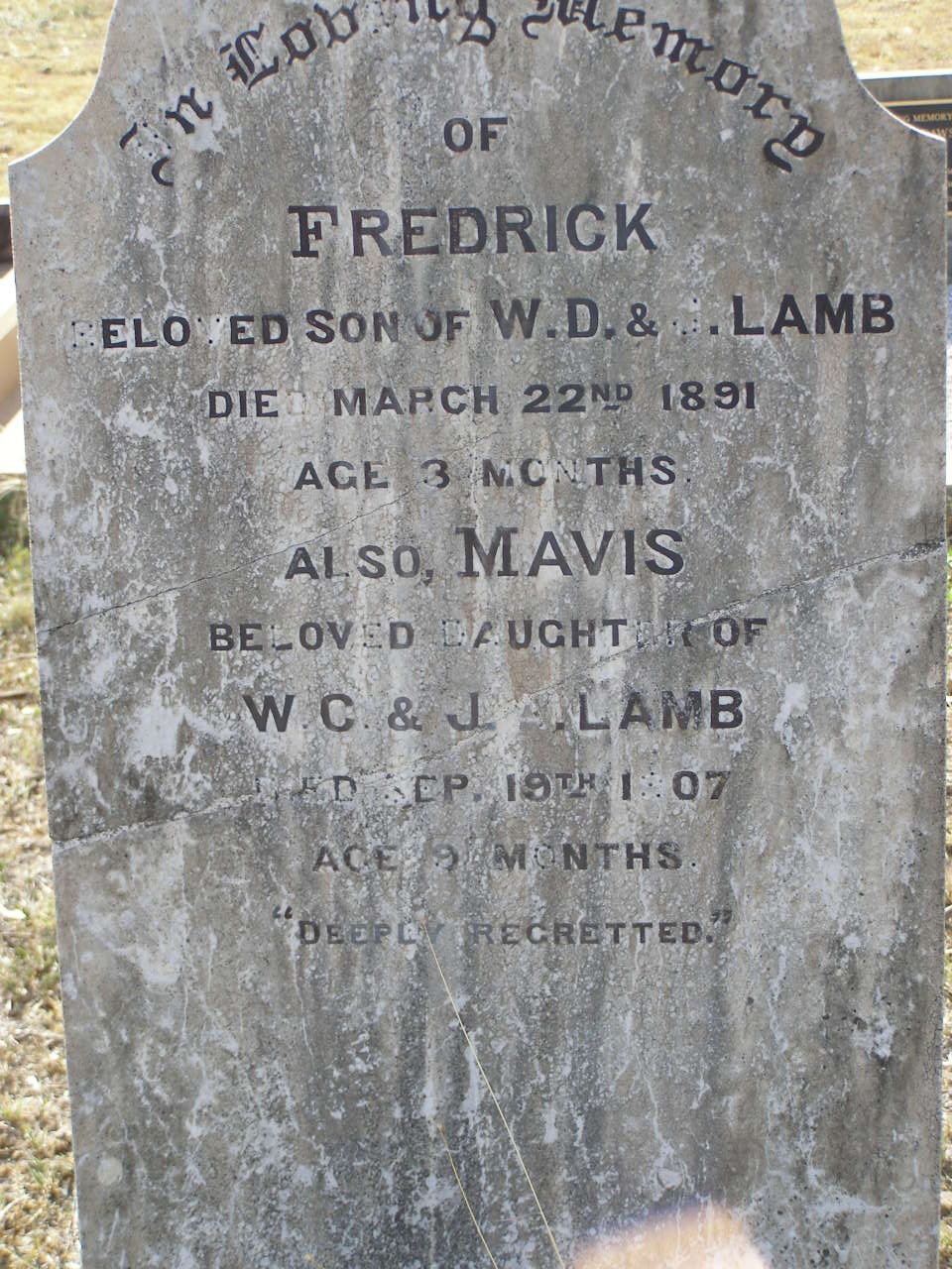 died 22 March 1891 aged 3 months;